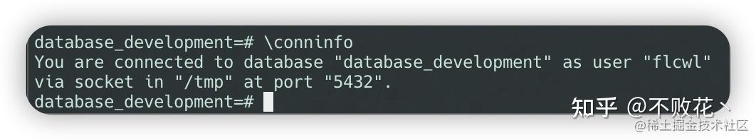 其实不是的。 我们可以在里面输入 \conninfo 查看此次连接信息。