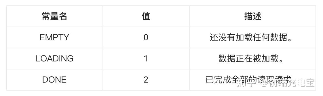 error:表示在读取文件时发生的错误;result:文件内容。该属性仅在读取操作完成后才有效,数据的格式取决于使用哪个方法来启动读取操作。readyState:表示FileReader状态的数字。取值如下: