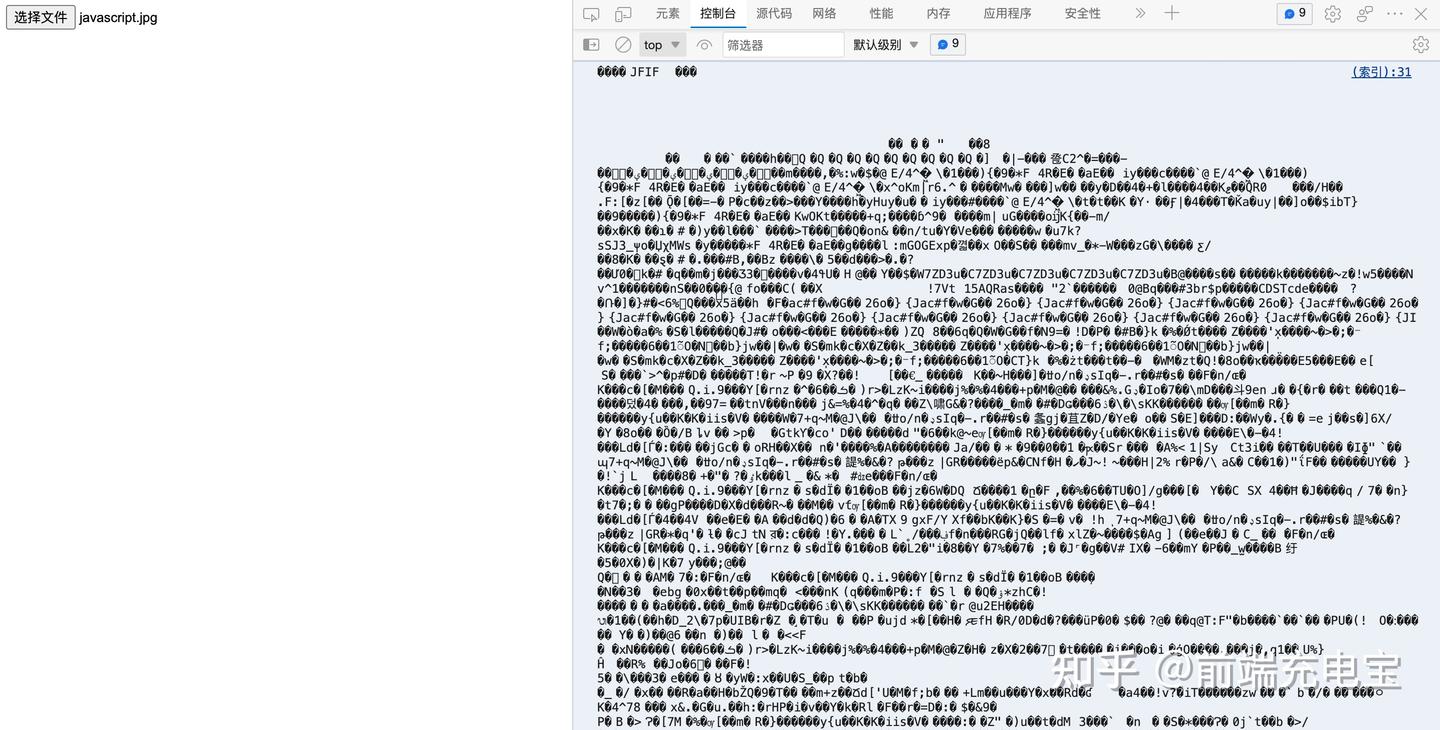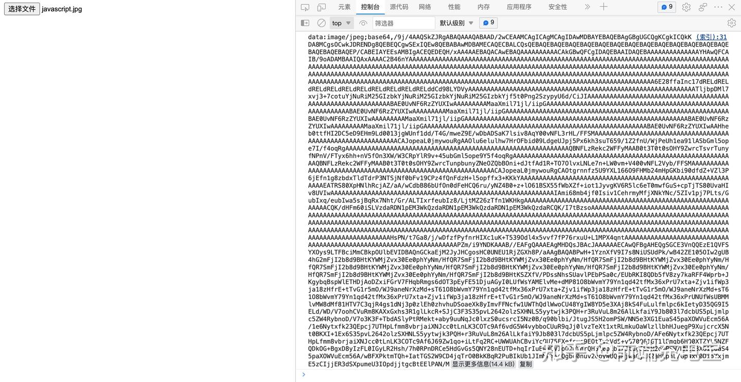 这时,再次上传二进制图片时,就会在控制台打印一个 base64 编码的 URL,如下: