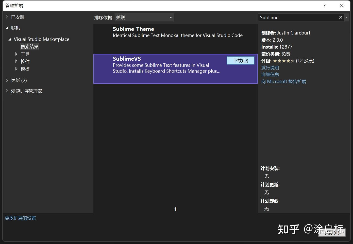 3.安装SubLimeVS,用于支持换行自动缩进,同样搜索,下载,安装。
