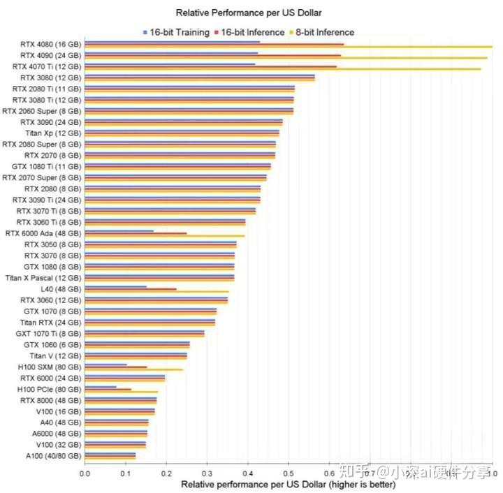 性价比:4090>V100>L40≈A100≈H100,性能H100>A100>L40>V100>4090,对于普通游戏玩家和个人创作者,4090 或许就能满足你对画质、性能的追求;而科研机构、大型企业投身前沿科技攻坚,H100、A100 这类专业高端卡则是不二之选。