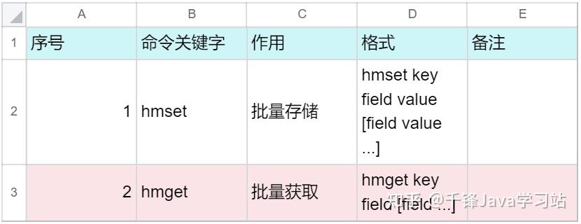 上述一条一条地增加数据有点繁琐,为此,Redis准备了多条数据的操作,格式如下: