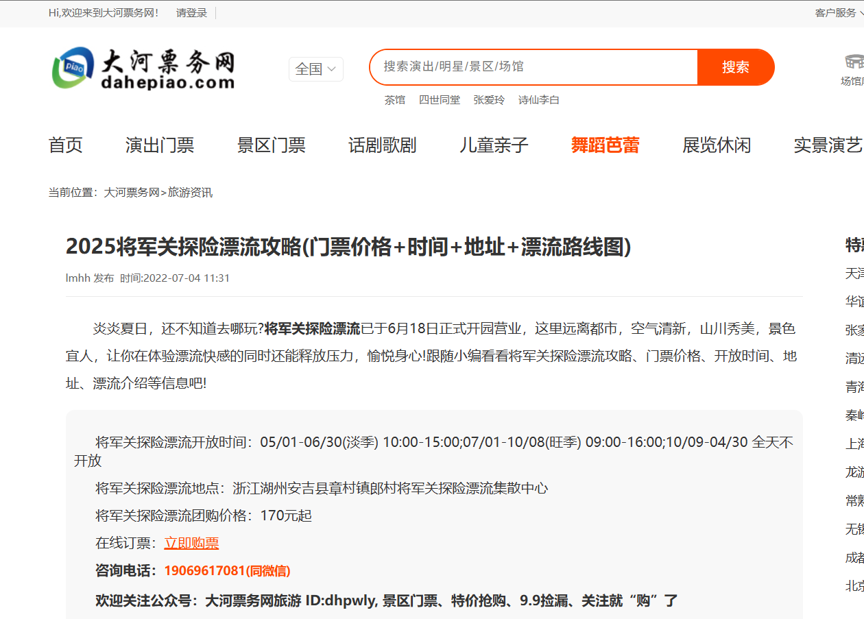 2025将军关探险漂流攻略(门票价格+时间+地址+漂流路线图)