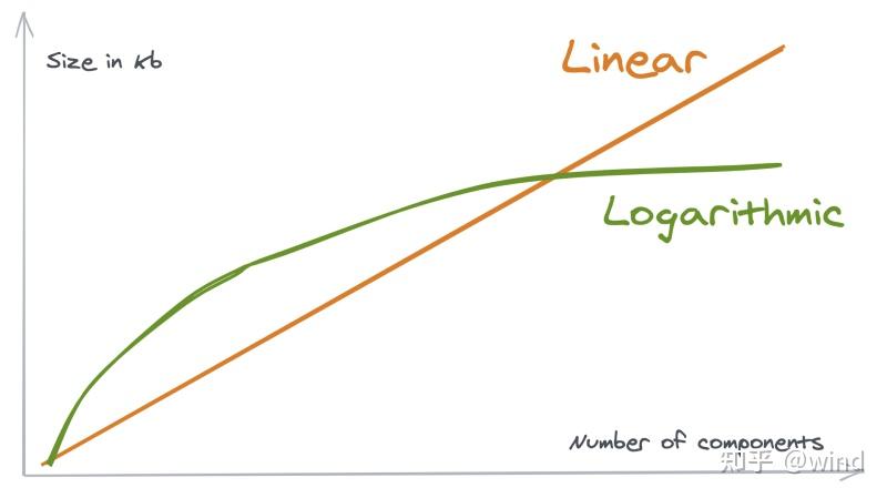 理论上,这个方法很适合大型应用。为什么?因为整个应用所需的 CSS 属性是有限的,所以增长规模是对数型,而非线性。因此 Atomic CSS 比非 Atomic CSS 输出的 CSS 代码更少。