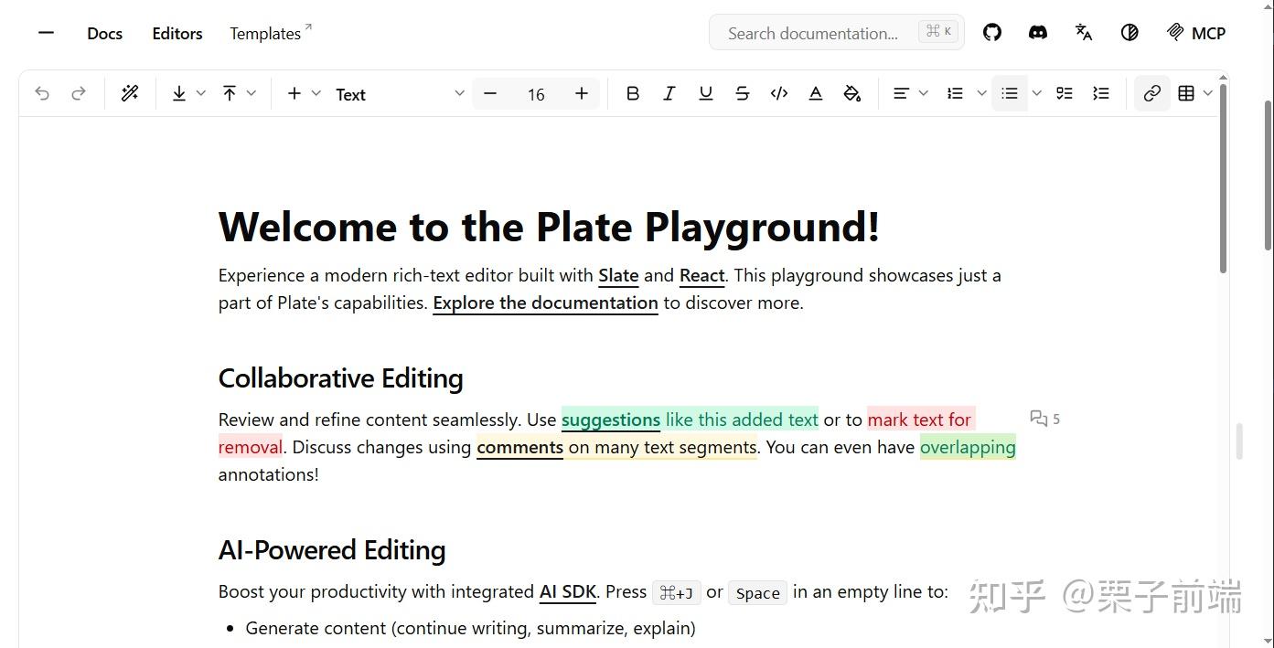 1. Plate:这是一个用于构建基于 React 的富文本编辑器的框架,你可以按需选择所需的特定功能,此外它还配有非常详尽的文档。