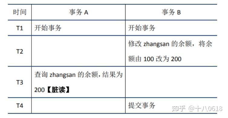 (1)脏读:当前事务(A)中可以读到其他事务(B)未提交的数据(脏数据),这种现象是脏读