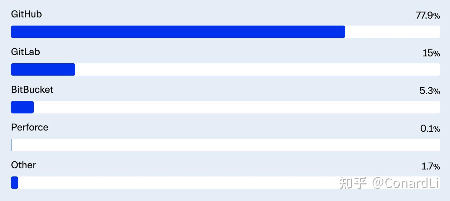 明显的赢家:GitHub 占据 77.9% 的票数,凭借其免费层和庞大的开源库,已成为开发者的首选平台。