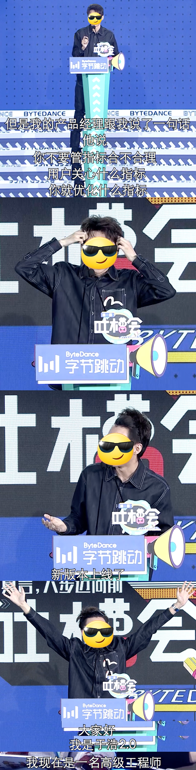 认识他的字节跳动同学可能不在少数,毕竟他也是字节跳动黑轴乐队的主唱+脱口秀演员,如果你看过前不久的字节跳动吐槽会,可能会记得于浩回应别人调侃他“程序员发际线”的段子: