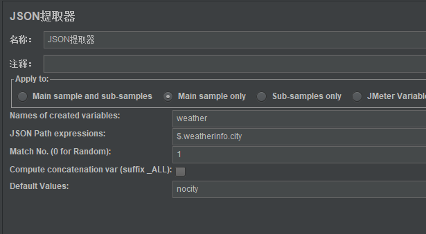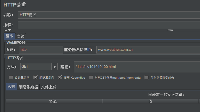3)在第一个线程中添加一个http请求,在http请求下添加一个json提取器