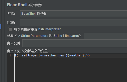 4)要用到_setproperty和property函数,所以在第一个线程中添加一个Beanshell取样器