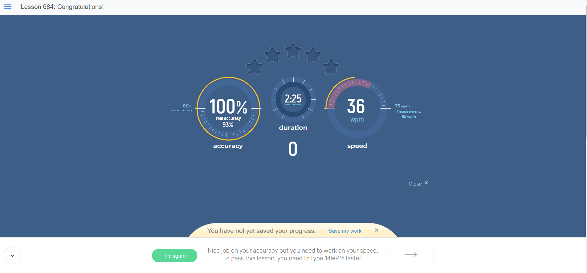 我在打字测试网站https://www.typingclub.com/sportal/program-3/8832.play 上测试了一下,打字速度在30wpm左右,还有待提高!