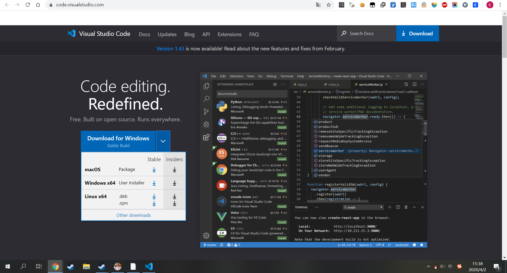 直接去VS Code官网https://code.visualstudio.com/下载与自己系统相对应版本的VS Code。
