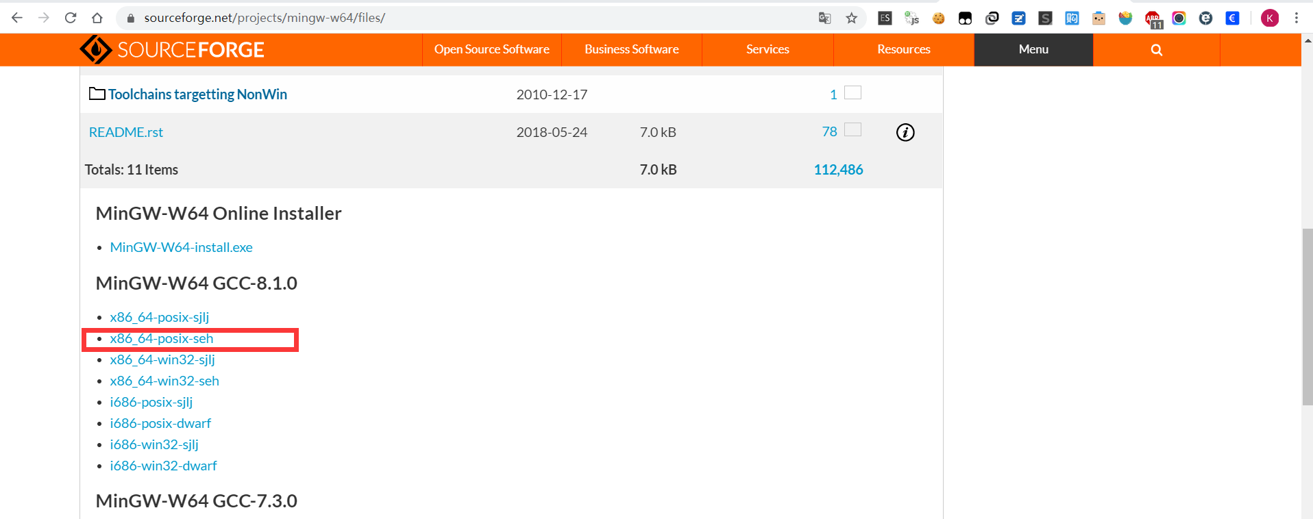 可以在这个地址https://sourceforge.net/projects/mingw-w64/files/下载最新版本的x86_64-posix-seh
