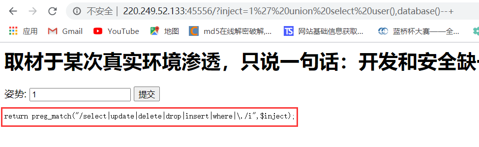 爆出一段正则表达式,发现过滤掉了图中的关键字。然后我寻找绕过点,发现了堆叠注入。