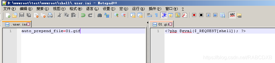 auto_append_file,指定一个文件,自动包含在要执行的文件前,类似于在文件前调用了require()函数。而auto_append_file类似,只是在文件后面包含。 使用方法很简单,直接写在.user.ini中:auto_prepend_file=01.gif01.gif是要包含的文件。
