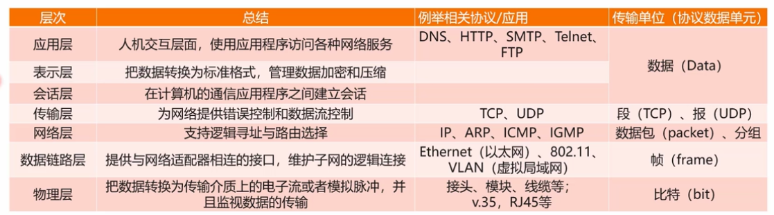 网络层:实现全球互联的功能,支持网络互联。主要职责是逻辑连接,数据转发,路由和错误报告。涉及设备有防火墙、路由器以及三层交换机