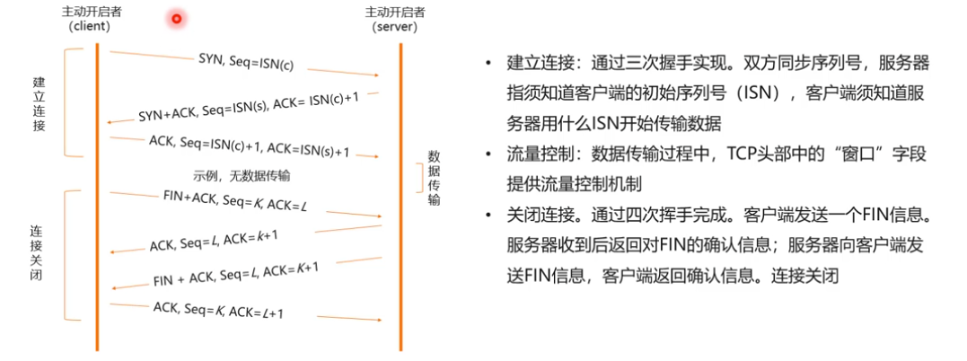 传输层:用于数据分段,提供了运行在不同主机的应用程序进程之间的逻辑通信,并负责纠错以及可靠性维护。提供服务有面向连接通信、顺序传输、数据完整性保证、流控制、流量控制、多路复用等