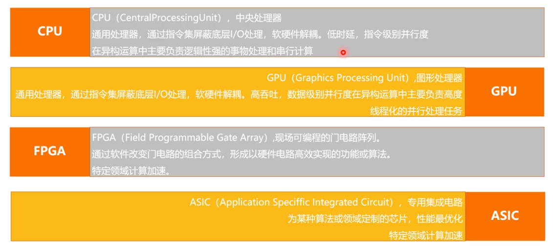 CPU:泛用性强,注重横向多功能任务,核心少,延迟低