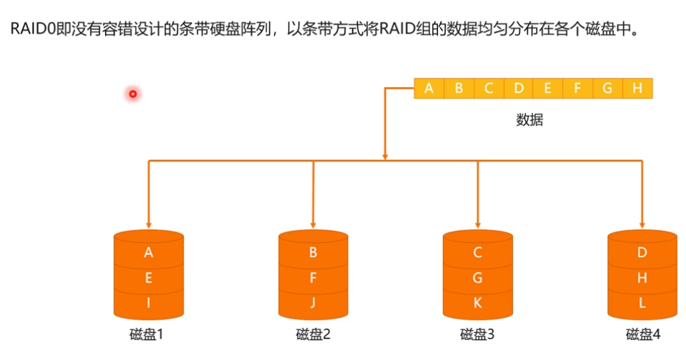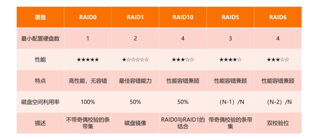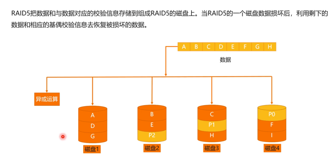 RAID5第四个盘会存放校验值,可以把丢失数据计算回来,至多允许一个硬盘故障