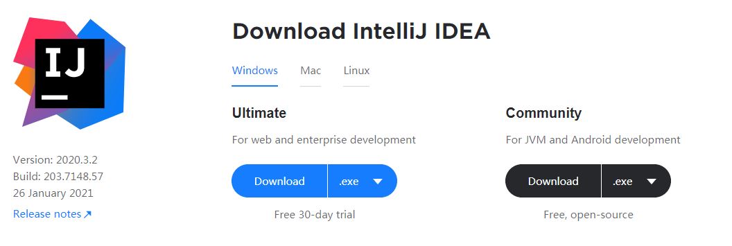 登录idea官网下载,旗舰版收费,社区版免费