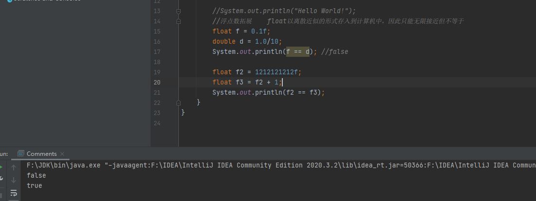 Java中的float浮点数类型存在舍入误差,最好完全避免使用浮点数进行比较