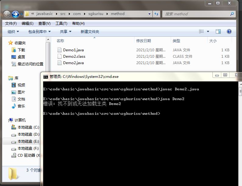 当使用命令行直接在Demo2.java路径下运行时,将会出错