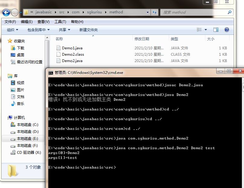 因此需要回退到src目录下运行.class文件(注意:main方法也可以传递参数)