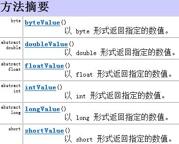 上述所提的包装类均继承自Number类,根据Java帮助文档,Number类中的方法如intValue可进行拆箱