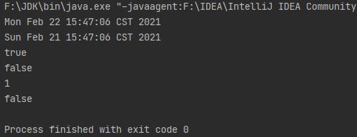 System.out.println(date1.compareTo(date2)); //如果参数 Date 等于此 Date,则返回值 0;如果此 Date 在 Date 参数之前,则返回小于 0 的值;如果此 Date 在 Date 参数之后,则返回大于 0 的值。