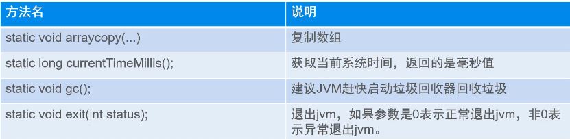 在System 类提供的方法中,有标准输入、标准输出和错误输出流;对外部定义的属性和环境变量的访问;加载文件和库的方法;还有快速复制数组的一部分的实用方法。 System中的方法均为静态方法,System类不能被实例化