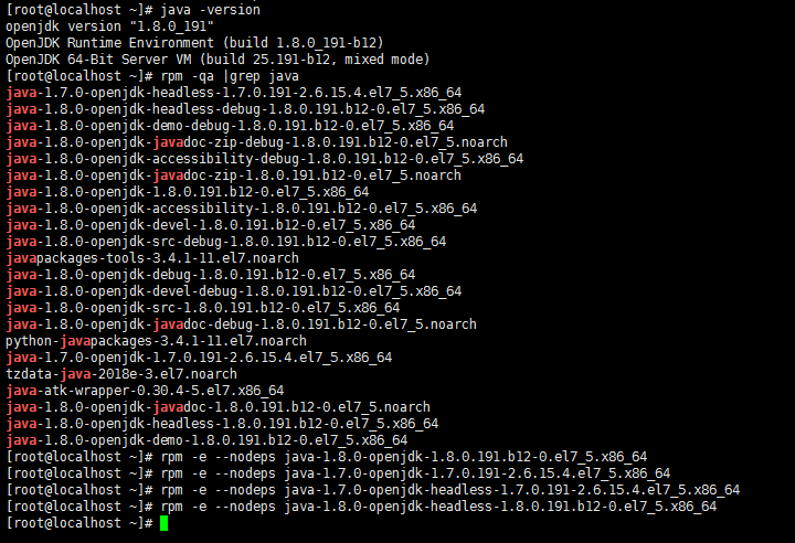 既然这样,使用yum -y remove java-1.8.0*进行删除,执行之后果然管用。