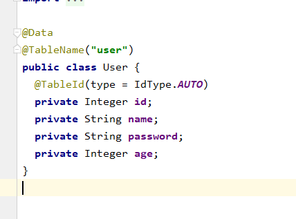 2.创建对应数据库中数据表的实体类对象,然后使用MybatisPlus的注解与数据库表进行关联