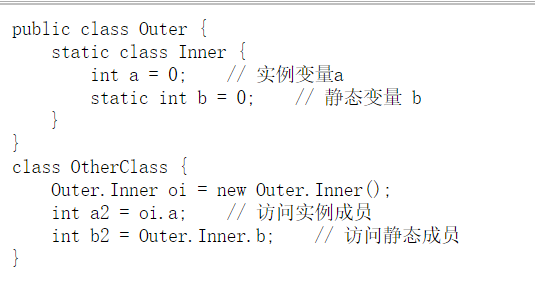 遇到的问题:静态内部类中的实例成员的访问 解决:访问静态内部类中的实例成员,需要通过静态内部类的实例