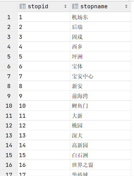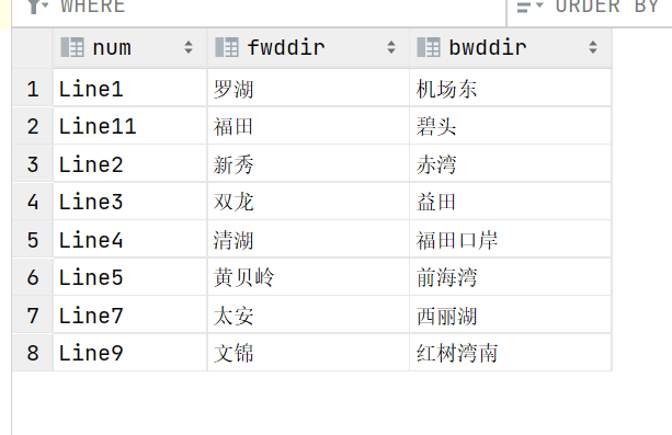 szsubway表结构