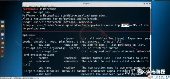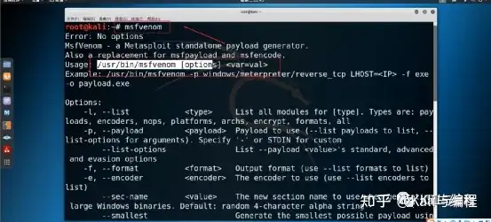 步骤2:msfvenom工具生成对应的木马文件举例,如下图所示。