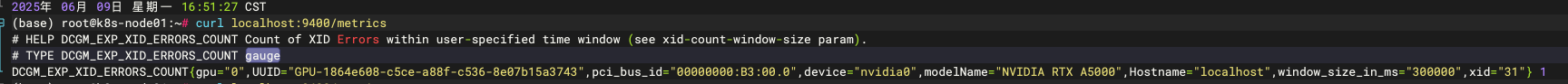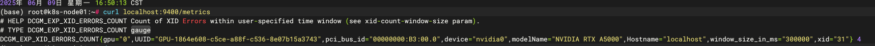 如果你在./default-counters.csv中增加了DCGM_EXP_XID_ERRORS_COUNT指标,还应该能找到下边的输出