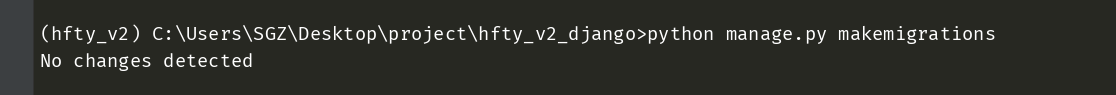 这个问题出现的原因有可能是数据库表的确没有发生任何变化所以没有检测到变化,还有一个原因是发生变化而没有检测出来,那么我们可以用python manage.py makemigrations app名字 (即进入具体的APP名字去检测数据库的变化) 然后再执行python manage.py migrate app名字