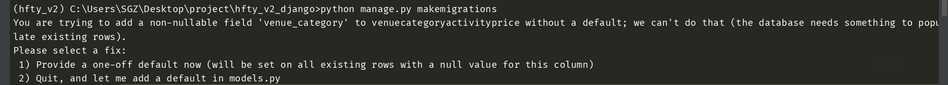 下面是数据表迁移的问题,即执行makemigrations后发现如下问题: