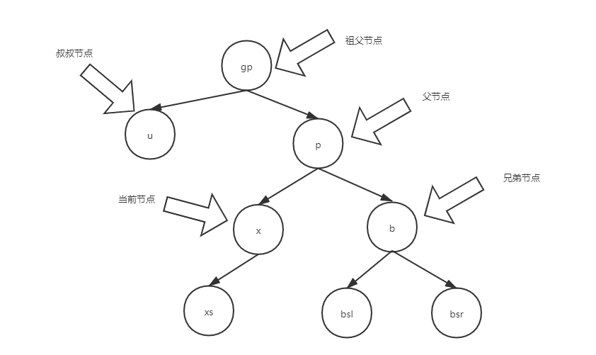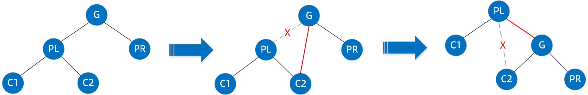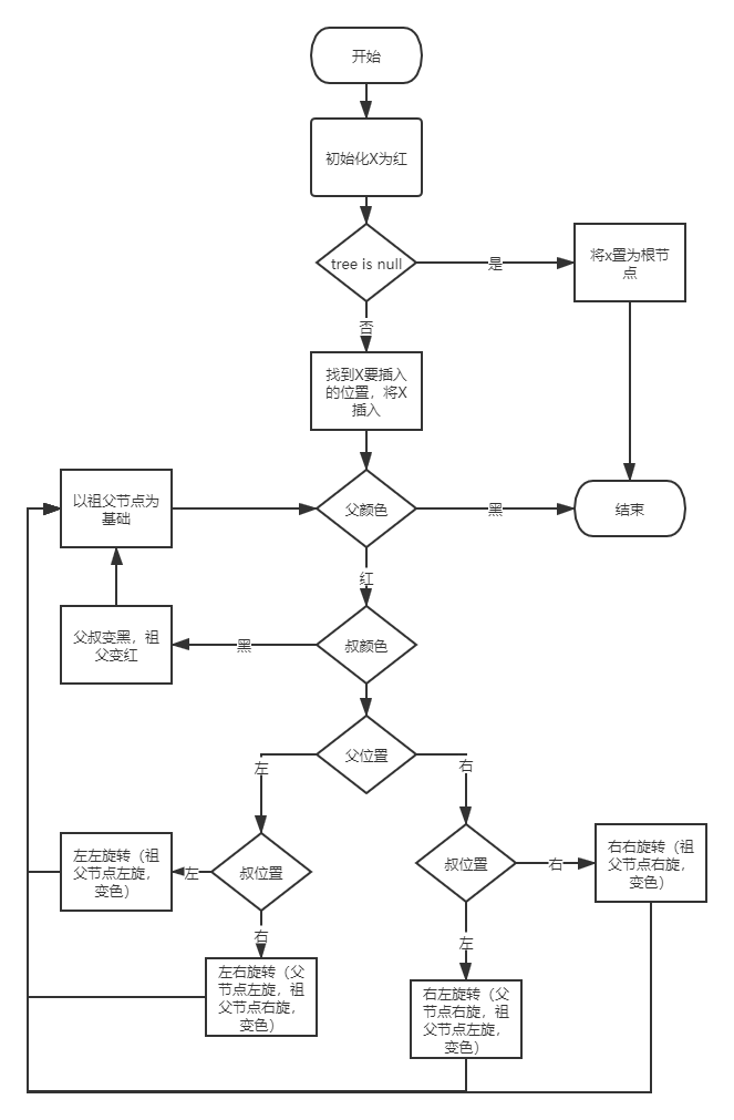 - 父左x右:左右旋转(父节点左旋,祖父节点右旋,祖父变红,x变黑)