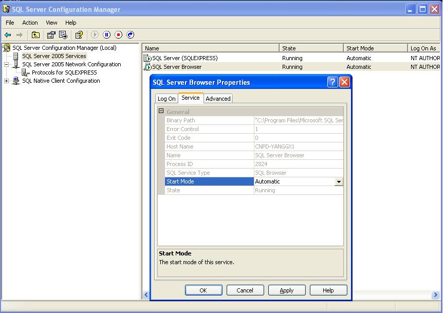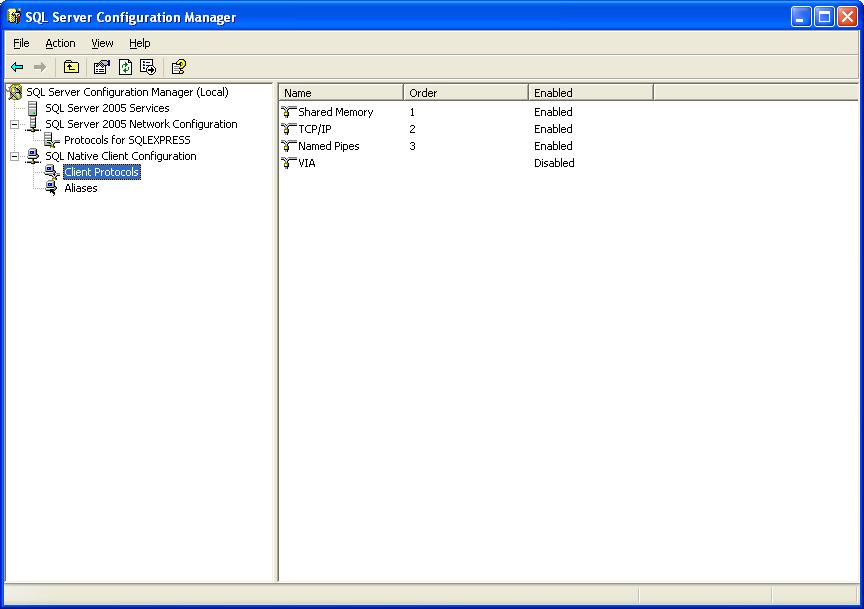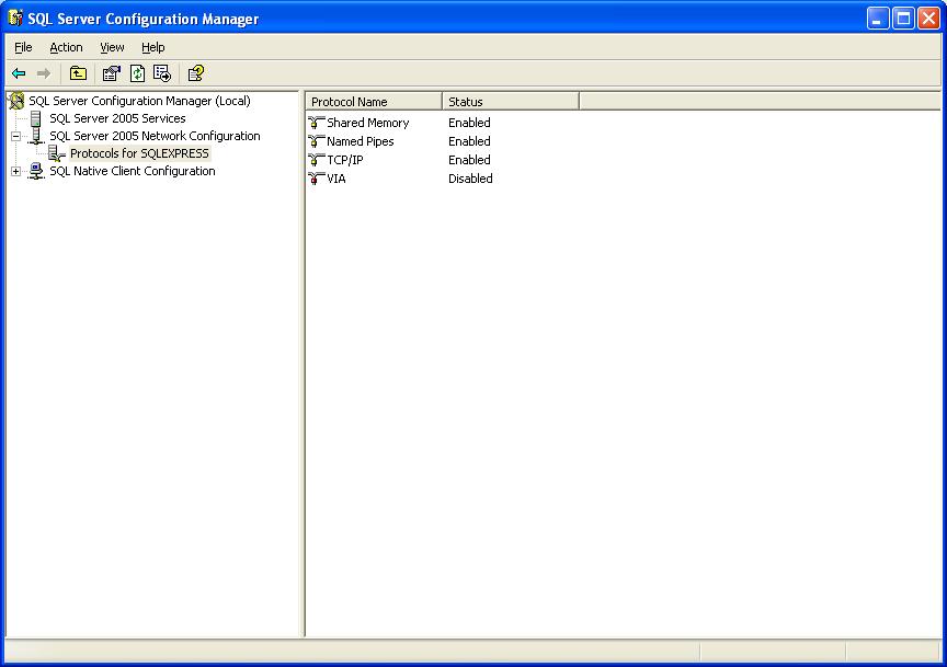 第二步: SQL Server 2005 Network Configuration -> Protocols for SQLXPRESS 下同时使用TCP/IP和named pipes