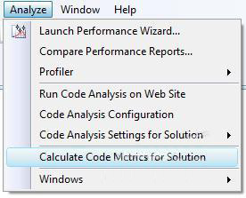 码度量是一组软件度量值,使开发人员可以更好地了解他们正在开发的代码。利用代码度量,开发人员可以了解哪些类型和/或方法应该返工或进行更彻底的测试。开发团队可以识别潜在的风险、了解项目的当前状态,并跟踪软件开发的进度。在VSTS开发版中进行代码度量,可以点击“分析”菜单,然后选择“计算代码度量值”(注:笔者使用的是VSTS英文版本),如图1所