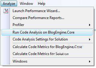 如果要对某个项目进行代码分析,可以选中该项目后,在“分析”菜单下选择“在XX项目上运行代码分析”,如图5所示: