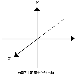 在3D的坐标系中,没有一个工业标准,有的采用y轴向上(y-up)的坐标系,有的采用z轴向上(z-up)的坐标系,有的采用右手坐标系统(right-handed coordinate system),有的采用左手系统(left-handed coordinate system)。