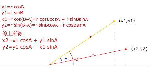 var x2:Number=x1*Math.cos(vAngle)-y1*Math.sin(vAngle);//逆时针旋转