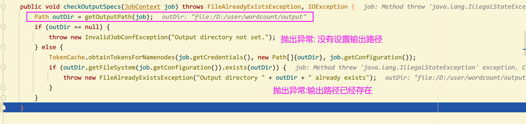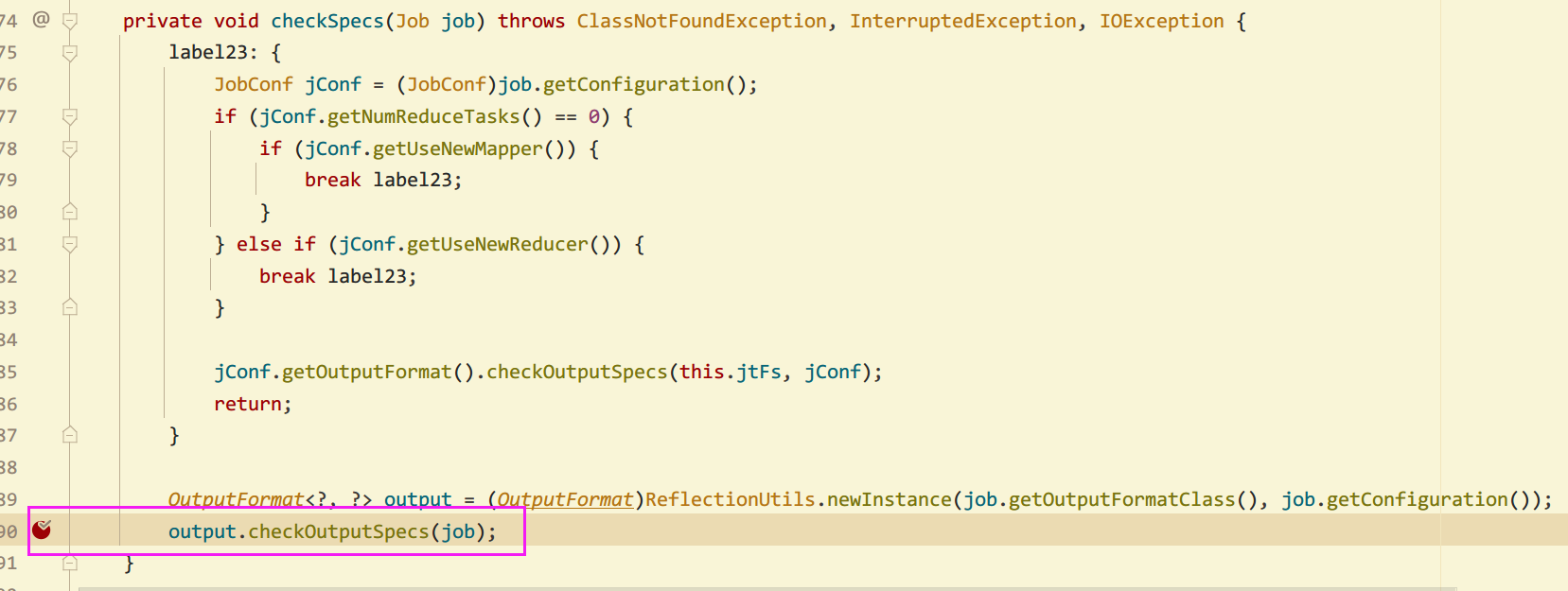 checkSpecs()方法, 此方法的作用是用来检查输出路径;