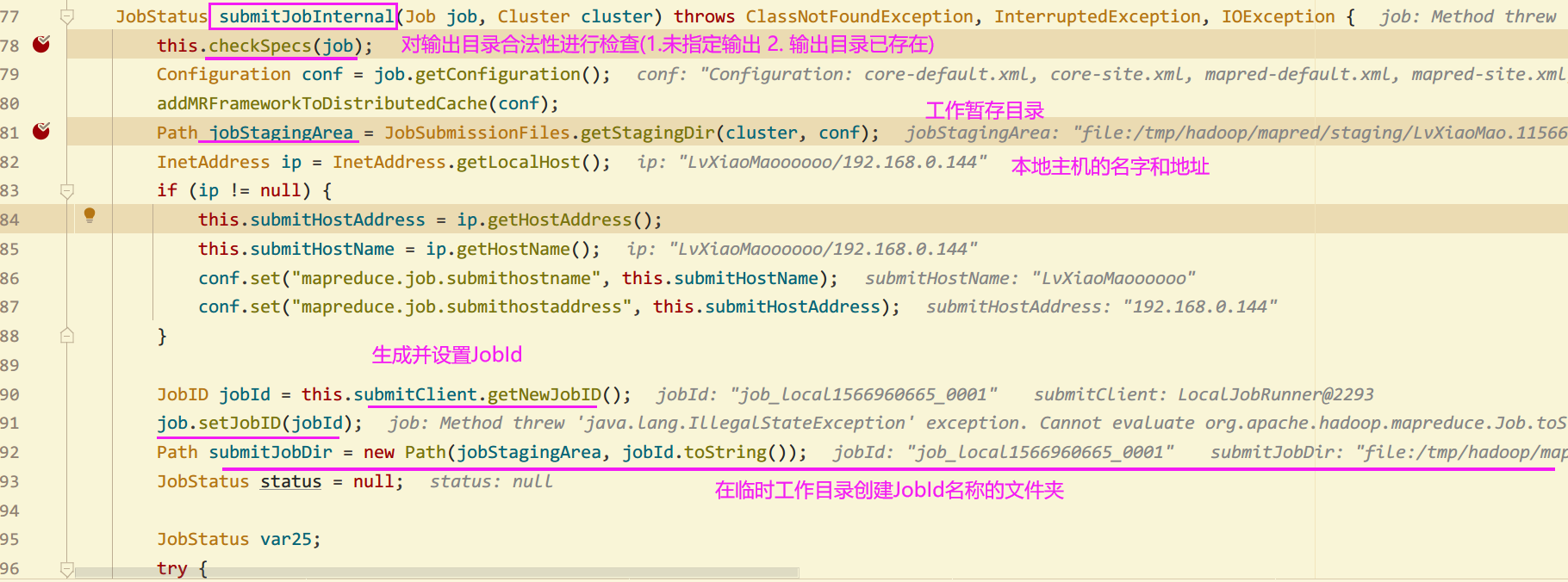 submitJobInternal方法体内我们继续在下图两处打上断点: