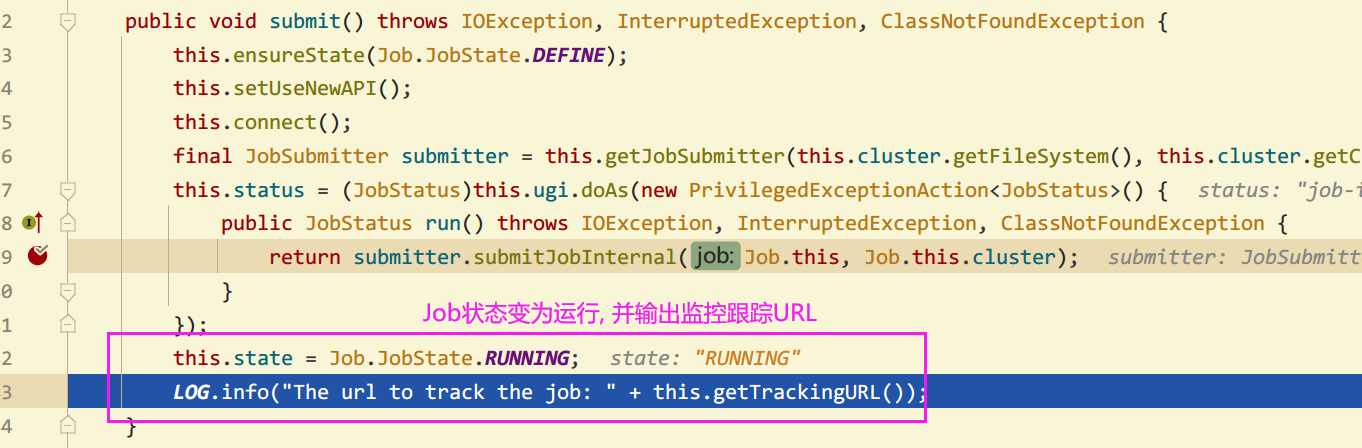 //在后面job提交过程中,它会将这个状态置为JobState.RUNNING(正在运行