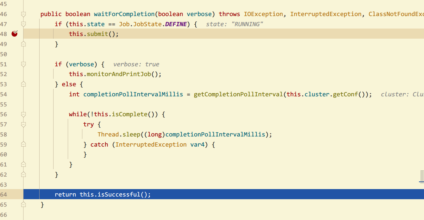 this.monitorAndPrintJob(); // verbose为true, 就会在控制台打印具体的job相关信息