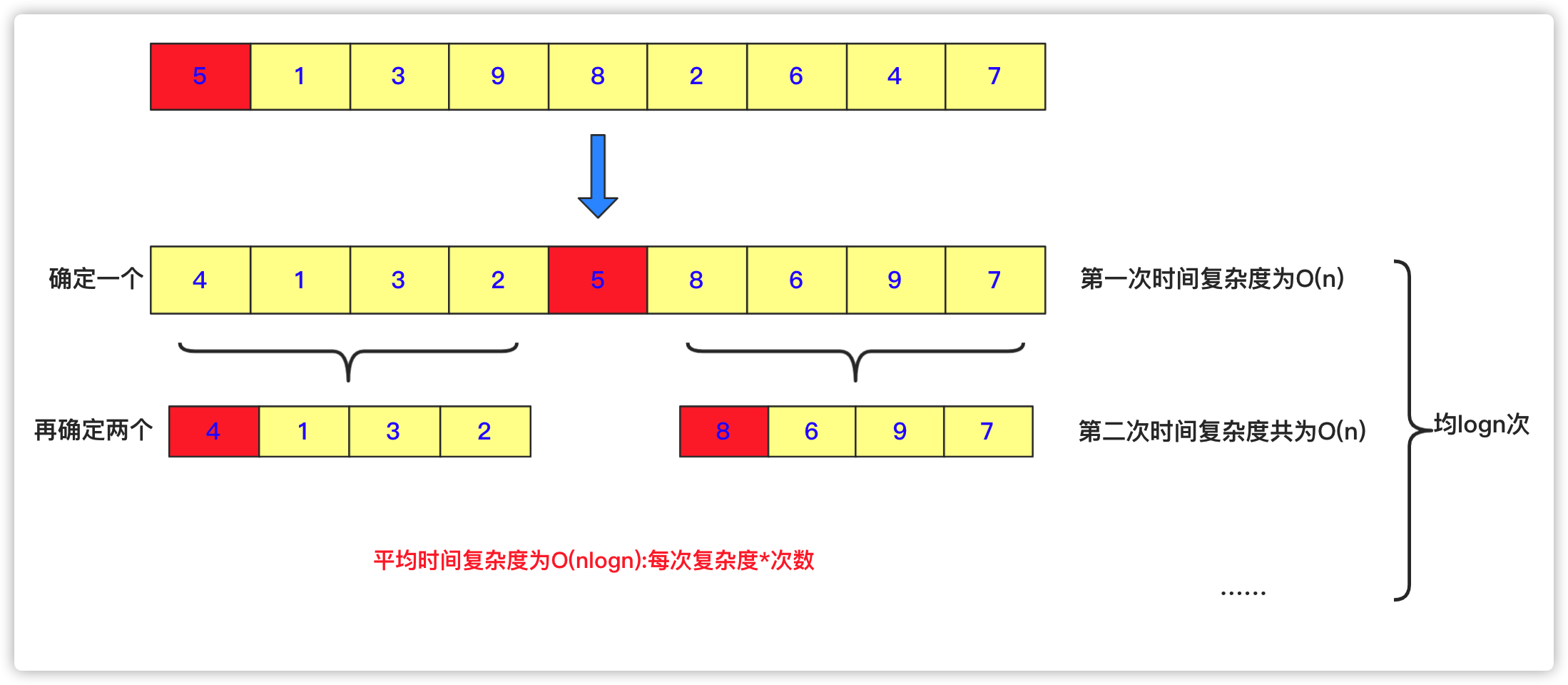 快排也是分治的一个实例,快排每一趟会选定一个数,将比这个数小的放左面子区间,比这个数大的放右面子区间,然后继续往下递归分治求解两个子区间,当然快排因为在分的时候就做了很多工作,当全部分到最底层的时候这个序列的值就是排序完的值。这是一种分而治之的体现。